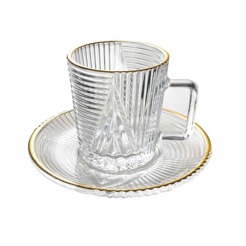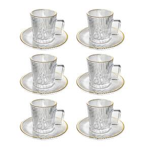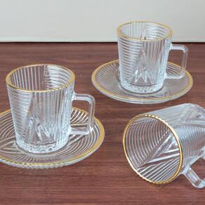 JOGO DE 6 XÍCARAS E PIRES DE VIDRO COM BORDA DOURADA IMPERIAL 90ML - 7548