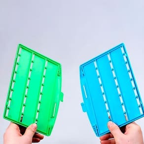 Contém dois tabuleiros com visores fáceis de levantar e abaixar.