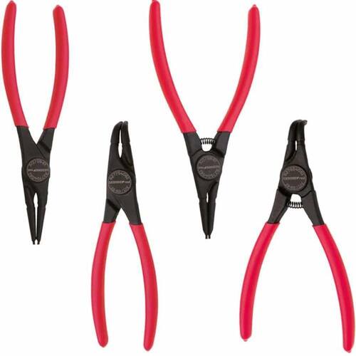 Jogo De Alicate Para Anéis Com 4 Peças - 3301829 - Gedore Red Jogo de Alicate para Anéis com 4 Peças - 3301829 - GEDORE RED Características: - Pontas retas e pontas curvas; - Aço cromo-vanádio GEDORE red; - Cabos com revestimento em plástico; - Fornecido em embalagem autosserviço; - Para anéis de segurança externos e internos conforme normas DIN 471 e DIN 472;