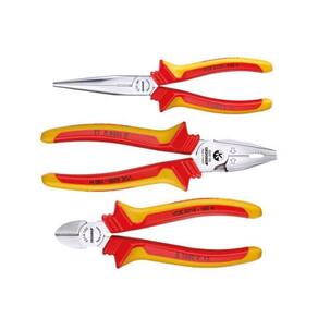 Itens inclusos: - 1 Alicate tipo telefone bico reto VDE H isolado EN 60900 VDE 8132 - 160 H - 1 Alicate universal Kraft VDE H isolado EN 60900 VDE 8250 - 180 H - 1 Alicate de corte diagonal modelo sueco VDE H isolado EN 60900 VDE 8314 - 160 H