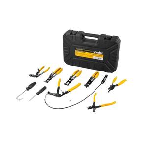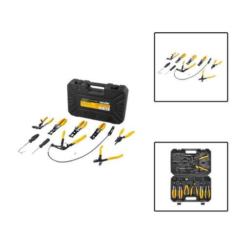 Especificações Técnicas: - Marca: Vonder; - Modelo: 6510009009; - Material: Aço Carbono com cabo revestido em PVC; - Quantidade de Alicates: 9; - Capacidade de Abraçadeiras: Abraçadeiras de 19 mm a 55 mm; - Aplicação: Indicado para a abertura de vários tipos de abraçadeiras em mangueiras de combustível, óleo, água, ar-condicionado, entre outros;