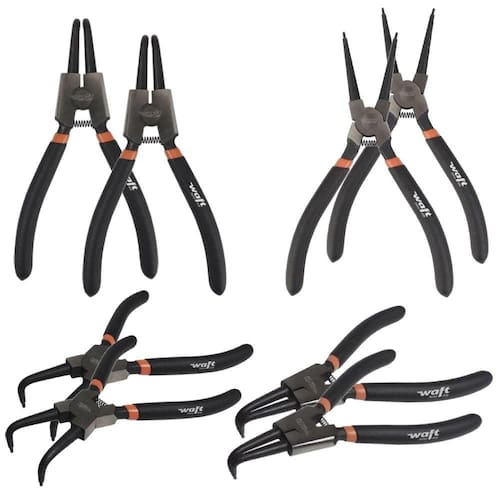 Jogo Alicate Anéis Interno Externo Bico Reto Curvo 7 pol 4 Peças - Waft