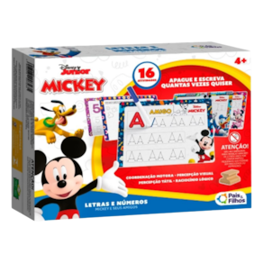 Jogo de Aprendizagem Letras Números Mickey Plaquinhas Roleta Caneta Apagadore Pais e Filhos