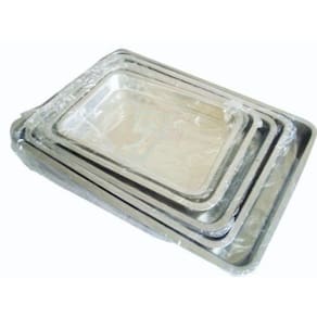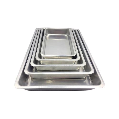 Jogo de assadeiras retangular alta de alumínio, confeccionada com material reforçado, composto de 5 peças de assadeiras. Ideal para assar bolos, pizzas, tortas, carnes e confeitarias em geral.
