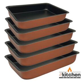 Jogo de Assadeiras Forma Retangular Alumínio Cor Cobre com Fundo Teflon Antiaderente do Nº 01 AO Nº 05