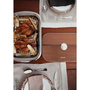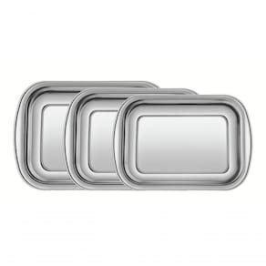 - Peças totalmente feitas de aço inox, mantêm suas características , preservando a beleza, a higiene e a durabilidade do material- Acabamento em brilho- Design moderno Proporciona requinte ao compor a Mesa- Ideal para assar e servir- Podem ser lavadas diariamente Na máquina de lavar louças Ean: 7891116058701