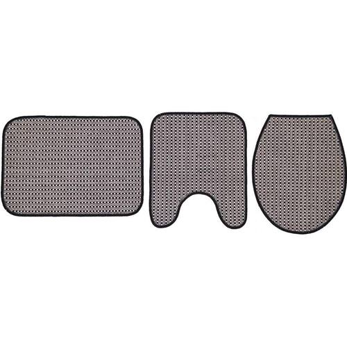 A rayza destaca-se pelo seu fino padrão de acabamento e por sua qualidade garantida. A alta qualidade dos produtos é obtida pelo aprimoramento contínuo das técnicas produtivas, qualidade das matérias primas e pela utilização de modernas tecnologias de produção. O jogo de banheiro artesanal look é imbatível em qualidade e possui excelente custo-benefício. O produto é lavável e não mancha, pois os fios possuem característica hidrófila que inibe a formação de fungos e bactérias mantendo seu tapete sempre conservado. Possui trama dupla e a tecnologia poliseda, proporcionando uma excelente estrutura e um toque macio. O tapete é antiderrapante e o acabamento feito em overloque nas laterais com barra dobrada nas pontas, o que torna o produto diferenciado com melhor fixação no piso. Ficha técnica informações técnicas para esse produto produto jogo de banheiro natural look qualidade sisal jacquard densidade 320 pontos/m batidas 550 linhas/m pelos 352.000 superfície 100% polipropileno poliseda altura do pelo flatweave medidas 1 peça 042x050 + 1 peça 042x050 + 1 peça 042x060 base antiderrapante Fotos ilustrativas. Variações de cores podem acontecer em diferentes aparelhos/equipamentos. Contraste e brilho são configurados de forma diferente em cada marca de smartphone, monitor e televisão.