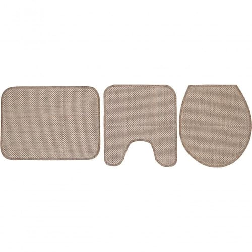 Ficha Técnica Informações técnicas para esse produto Produto Jogo de Banheiro Natural Look Qualidade Sisal Jacquard Densidade 320 pontos/m Batidas 550 linhas/m Pelos 352.000 Superfície 100% Polipropileno Poliseda Altura do Pelo Flatweave Medidas 1 peça 042x050 + 1 peça 042x050 + 1 peça 042x060 Base Antiderrapante *Fotos ilustrativas. Variações de cores podem acontecer em diferentes aparelhos/equipamentos. Contraste e brilho são configurados de forma diferente em cada marca de smartphone, monitor e televisão.