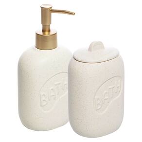 Jogo de banheiro cerâmica 2 peças letters dispenser algodão O conjunto de cerâmica letters em bege destaca-se pelo seu design único, com letras estampadas que adicionam um toque de personalidade ao ambiente. A cor bege proporciona uma base neutra e acolhedora, perfeita para criar um banheiro com estilo e um charme adicional. Fabricado em cerâmica de alta resistência, o conjunto é projetado para suportar o uso diário enquanto mantém sua estética refinada. A cerâmica é fácil de limpar e cuidar, garantindo durabilidade e um visual impecável ao longo do tempo. Composto por duas peças práticas para o banheiro, como um porta-sabonete e um porta-escovas ou itens similares, o conjunto oferece soluções funcionais para organizar o espaço. As peças são desenhadas para facilitar o uso diário e manter os itens essenciais do banheiro bem organizados.
