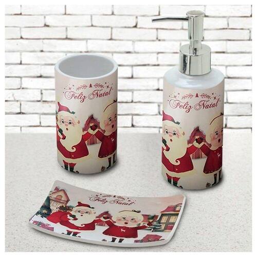 Jogo com 3 peças para banheiro em ceramica contendo, 1 porta escovas, 1 saboneira liquida e 1 saboneteira.