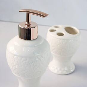 O jogo de porta sabonete e porta escovas é ideal para otimizar espaços, contando apenas com as peças essenciais dentro do seu banheiro ou lavabo. As peças são na cor branca e com detalhes que as deixam ainda mais lindas e modernas. Agora ficou ainda mais prático e inovador ter um ambiente com a sua cara.