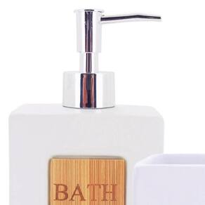 Jogo De Banheiro em Cerâmica e Bambu Bath 2 Peças Mimo Style Cor: Branco Jogo De Banheiro em Cerâmica e Bambu Black 2 Peças: Porta Sabonete Líquido e Porta Escova Mimo Style