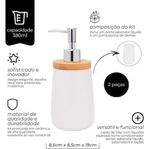 - Material do produto: Cerâmica com detalhes em bambu e ABS (apenas saboneteira liquida)