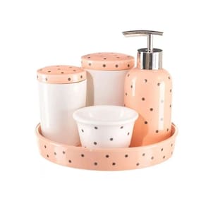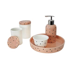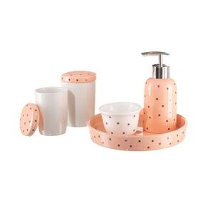 Jogo De Banheiro Higiene De Porcelana Estampa Poá 5 Peças