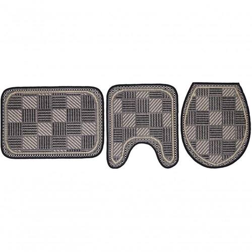 Ficha Técnica Informações técnicas para esse produto Produto Jogo de Banheiro Natural Look Qualidade Sisal Jacquard Densidade 320 pontos/m Batidas 550 linhas/m Pelos 352.000 Superfície 100% Polipropileno Poliseda Altura do Pelo Flatweave Medidas 1 peça 042x050 + 1 peça 042x050 + 1 peça 042x060 Base Antiderrapante *Fotos ilustrativas. Variações de cores podem acontecer em diferentes aparelhos/equipamentos. Contraste e brilho são configurados de forma diferente em cada marca de smartphone, monitor e televisão.