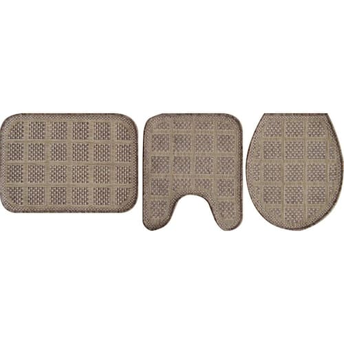 A rayza destaca-se pelo seu fino padrão de acabamento e por sua qualidade garantida. A alta qualidade dos produtos é obtida pelo aprimoramento contínuo das técnicas produtivas, qualidade das matérias primas e pela utilização de modernas tecnologias de produção. O jogo de banheiro natural look é imbatível em qualidade e possui excelente custo-benefício. O produto é lavável e não mancha, pois os fios possuem característica hidrófila que inibe a formação de fungos e bactérias mantendo seu tapete sempre conservado. Possui trama dupla e a tecnologia poliseda, proporcionando uma excelente estrutura e um toque macio. O tapete é antiderrapante e o acabamento feito em overloque nas laterais com barra dobrada nas pontas, o que torna o produto diferenciado com melhor fixação no piso. Ficha técnica informações técnicas para esse produto produto jogo de banheiro natural look qualidade sisal jacquard densidade 320 pontos/m batidas 550 linhas/m pelos 352.000 superfície 100% polipropileno poliseda altura do pelo flatweave medidas 1 peça 042x050 + 1 peça 042x050 + 1 peça 042x060 base antiderrapante Fotos ilustrativas. Variações de cores podem acontecer em diferentes aparelhos/equipamentos. Contraste e brilho são configurados de forma diferente em cada marca de smartphone, monitor e televisão. Marca: Não Informado