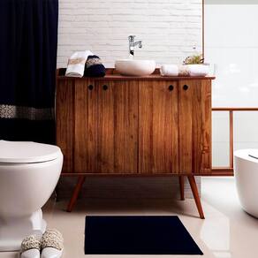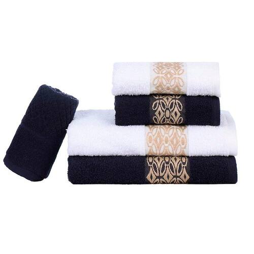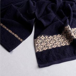 Jogo de Banho Bordado Jacquard 5 Peças Marinho/Branco Aslan Sonhare Prata Sultan