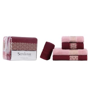 Jogo de Banho Bordado Jacquard 5 Peças Malbec/Rosa Antique Aslan Sonhare Prata Sultan