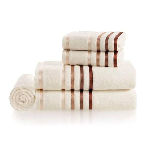 Jogo De Banho 5 Peças Fio Penteado Karsten Lumina Ivory Ferrugem O conjunto de toalhas Karsten Lumina, com 5 peças, é carregado de conforto e maciez. Além disso, passaram por pré-encolhimento para manter suas dimensões intactas após múltiplas lavagens. Esqueça as preocupações com bolinhas, graças ao acabamento antipilling que preserva a qualidade da peça. Feitas com 98% algodão e 2% Poliéster, garantem alta absorção. Linha ou Coleção - Lumina Modelo - 3973052 Comprimento - 140 cm Largura - 70 cm Descrição do Tamanho - 140x70 cm Quantidade de Peças - 5 Estilo - Clássico Tecido - Algodão Cor - Bege Composição - 98% Algodão 2% Poliéster Itens Inclusos - 2 Toalhas de Banho; 2 Toalhas de Rosto; 1 Toalha de Piso Acabamento - Toque ultra macio; Super Absorção; Pré-encolhido; Antipiling; Tecnologia Unika; Tecnologia Softmax; Etiqueta Diferenciada Gramatura - 500g/m Fios - Fio Penteado Combinação de cores - Ivory com ferrugem Mais Informações - Toalha de Banho 70cm x 1,40m; Toalha de Rosto 48cm x 80cm; Piso 48cm x 70cm Instruções de Lavagem - Lavar com temperatura máxima de 40C; Não alvejar; Secar com temperatura baixa; Passar com temperatura máxima de 150; Não limpar a seco. Marca - Karsten Aviso sobre o produto - Pode haver pequena variação de cor, de acordo com a configuração e modelo do monitor ou do aparelho celular. Consultar a cor nas especificações técnicas do produto. EAN - 7909156973059