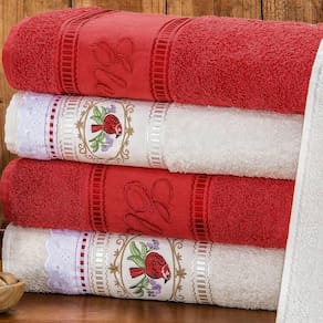 Marca: Bia Enxovais | Estampa: Não se Aplica | Medidas: 02 Toalhas de Banho 1,40m x 70cm02 Toalhas de Rosto 70cm x 50cm01 Piso 70cm x 50cm | Número de Peças: 05 Peças | Material: Agodão | Cor Predominante: Vermelho/Palha | Cama Indicada: Não se Aplica