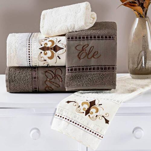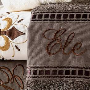 Jogo de Banho Bordado Ponto Russo Algodão 5 Peças - Tabaco/Palha - Única