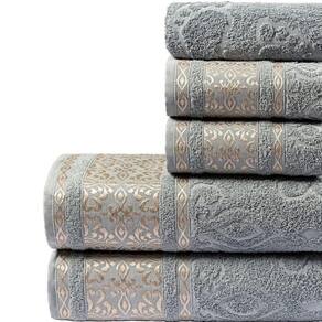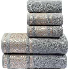 Marca: Bia Enxovais | Estampa: Não se Aplica | Medidas: 02 Toalhas de Banho 1,50m x 75cm02 Toalhas de Rosto 70cm x 50cm01 Piso 75cm x 50cm | Número de Peças: 05 Peças | Material: Agodão | Cor Predominante: Granito | Cama Indicada: Não se Aplica