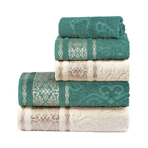Decore seu banheiro com esse lindo Jogo de Banho Essence, trabalhado em tecido 100% algodão, gramatura 450g m². Com um lindo e delicado acabamento em fios dourados em seu barrado. É o toque final para requintar seu lavabo ou banheiro.