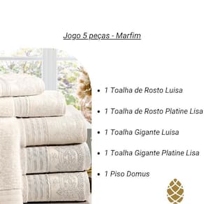 01 Toalhas de Banho Gigante Luisa - Tamanho: 81cm x 150cm 01 Toalhas de Banho Gigante Platine - Tamanho: 81cm x 150cm 01 Toalhas de Rosto Luisa - Tamanho: 50cm x 80cm 01 Toalhas de Rosto Platine - Tamanho: 50cm x 80cm 01 Toalha de Piso Domus Tamanho: 50cm x 80cm