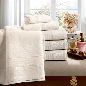 Jogo De Banho Gigante 05 Peças Algodão Egípcio Luisa Cor: Marfim-124 Jogo de Toalhas com Renda 5 Peças em Algodão Egípcio 500g/m Buettner Luisa