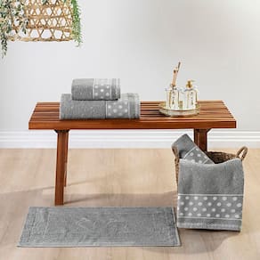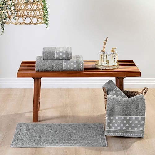 Jogo de Banho Meggy Poá Bolinhas Toalhas Macias 100% Algodão 5 Peças - Cinza Granito - Única