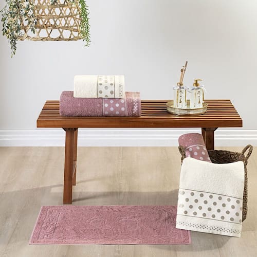 Descubra o toque macio e o design elegante do Jogo de Banho Meggy Poá. Composto por 5 peças essenciais – 2 Toalhas de Banho, 2 Toalhas de Rosto e 1 Piso, este conjunto foi pensado para elevar a sua experiência diária de autocuidado, proporcionando conforto e sofisticação.