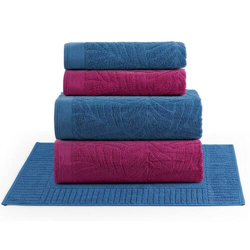 Inspirado na Costela de Adão, planta tropical de folhas exuberantes e cheias de personalidade, o conjunto apresenta um lindo trabalho em jacquard com desenho em formato de folhas, adicionando textura, frescor e charme à decoração do banheiro.