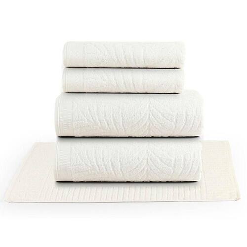 Inspirado na Costela de Adão, planta tropical de folhas exuberantes e cheias de personalidade, o conjunto apresenta um lindo trabalho em jacquard com desenho em formato de folhas, adicionando textura, frescor e charme à decoração do banheiro.