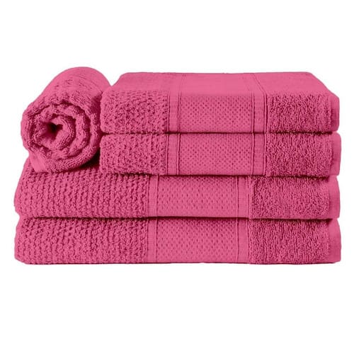 Quantidade de peças e medidas aproximadas largura x comprimento : 2: toalhas de banho de 1,40m x 70cm 2: toalhas de rosto de 50cm x 80cm 1: toalha para pés piso de 50cm x 70cm