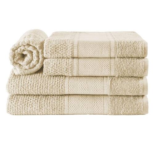 As toalhas do Jogo de Banho Noblesse possuem relevo em flocos e uma linda barra decorativa, que adicionam um toque de elegância ao ambiente. O jogo é composto por 2 toalhas de banho de 1,40m x 70cm, 2 toalhas de rosto de 50cm x 80cm e 1 toalha para pés piso de 50cm x 70cm.