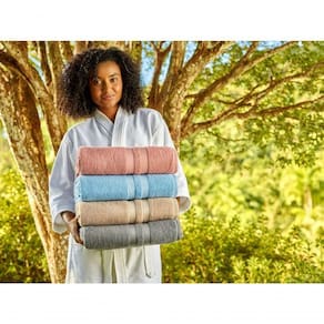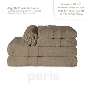 Os produtos desta coleção são produzidos com fios 100% algodão, maisfinos e duplos, de titularidade 24x2, com grande capacidade de absorção e durabilidade. Os Jogos de Banho Paris possuem cores neutras, corpo canelado em relevo e uma linda barra dupla decorativa.