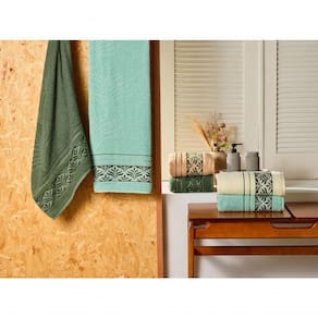 O desenho delicado que imita folhagem confere um charme especial a cada peça do nosso Kit Toalha Sintra. Cada detalhe foi cuidadosamente desenhado para trazer uma sensação de frescor e conexão com a natureza para o seu espaço de banho.