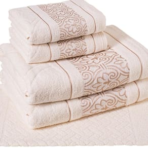 O jogo de banho é tão indispensável que se tornou parte da decoração do cômodo. Geralmente, o conjunto é formado por cinco peças, sendo duas toalhas de banho, duas de rosto e uma de piso. Assim, ele dispõe dos itens essenciais para completar o seu banheiro.