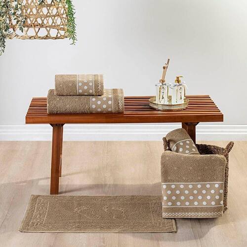 O design com efeito decorativo de bolinhas adiciona um toque de elegância e sofisticação, tornando as toalhas não apenas funcionais, mas também belas peças de decoração para o seu banheiro. A alta qualidade do algodão garante durabilidade, mantendo a suavidade e a capacidade de absorção mesmo após várias lavagens.