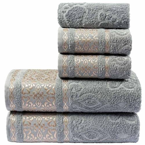 Contém na Embalagem: 02 Toalhas de banho 1,50m X 75cm 02 Toalhas de rosto 80cm X 50cm 01 Piso 75cm X 50cm