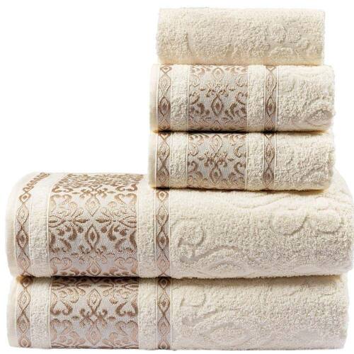 Jogo de Banho Toalhas Malau Decorado 100% Algodão 5 Peças - Palha Pérola