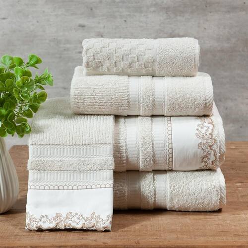 Contém: 02 - Toalhas de Banho - 1,50m x 80cm 02 - Toalhas de Rosto - 80cm x 50cm 01 - Toalha de Piso - 70cm x 50cm