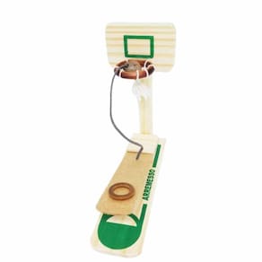 O Jogo de Basquete de Dedo consiste em acertar a bolinha dentro da cestinha, utilizando a catapulta.