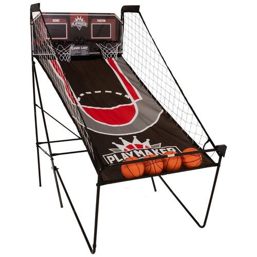 Chega de desconforto com instruções de montagem complicadas! O Jogo de Basquete Duplo Triumph Play Maker é fácil e rápido de montar, com construção de quadro Quick Connect que permite montar o aro em menos de 3 minutos! Possui 8 modos de jogo para diversão e competição sem fim. Inclui 4 bolas de basquete prontas para o jogo, bomba e agulha. Com aro de metal durável, placar eletrônico de LED, controle conveniente da base e estrutura dobrável para armazenamento fácil. Dimensões: 95cm x 109cm x 206cm. Comece a jogar agora mesmo com o Triumph Play Maker! Marca: Não Informado