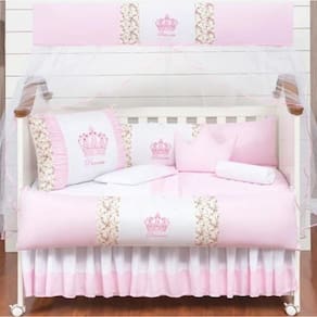 Jogo De Berço Com 11 Peças Menina Coroa Princesa Rosa Claro