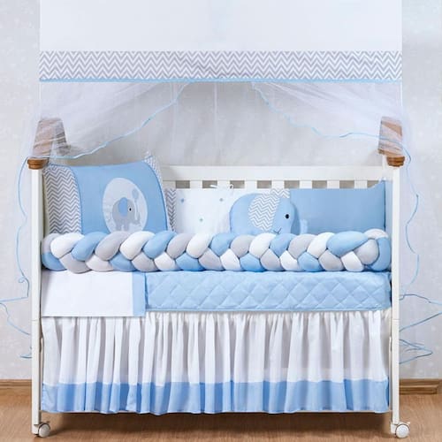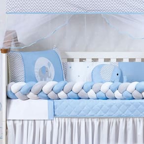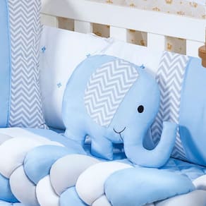 KIT DE BERÇO ELEFANTE 14 PEÇAS. Contém: 1 Travesseiro de algodão 100% silicone 40 cm x 30 cm. 1 Edredom 1,25 m x 75 cm. 1 Bandô de Mosqueteiro 1,40 m x 20 cm. 1 Mosqueteiro 4,60 m x 1,50 m. 1 Cabeceira 60 cm x 40 cm. 1 Lateral 1,25 m x 25 cm. 1 Trança 1,25 m x 12 cm. 1 Lençol 1,25 m x 95 cm 100% Algodão. 1 Trocador 50 cm x 40 cm. 1 Almofada Elefante 30 cm x 35 cm. 1 Saia box. 1 Lençol 1,20 m x 80 cm. 1 protetor impermeável de berço 1,50 m x 80 cm. Composição: Tecido estampado 100% Algodão. Tecido colorido 100% Poliéster. Tecido lençol 50% Algodão 50% Poliéster. Tule 100% Poliamida. Plástico 100% PVC. Enchimento 100% Poliéster. Edredom dupla face todo matelado com várias costuras. Laterais e cabeceiras com zíper para facilitar a lavagem de seu produto. Marca: Não Informado