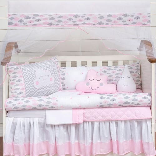 Jogo de berço nuvem rosa com lençol de elastico algodão 12