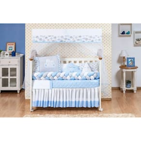 Kit de berço nuvem 12 peças O kit berço serve em berços padrão nacional e americano Possui zíper para retirar os enchimentos Tecido de qualidade Contém na embalagem: 1 edredom 1,30 m x 0,75 cm 1 almofada nuvem 0,40 cm x 0,20 cm 1 cabeceira 0,57 cm x 0,37 cm 1 lateral 1,25 m x 0,25 cm 1 trança 1,25 m x 0,12 cm 1 lençol de cima 1,30 m x 0,90 cm 1 fronha 0,28 cm x 0,38 cm 1 bandô de mosqueteiro 1,40 m x 0,20 cm 1 mosqueteiro 4,50 m x 1,50 m 1 almofada de gota 1 saia box 1 lençol 1,20 m x 0,80 cm Composição: Tecido estampado: 100% algodão Tecido liso: 50% poliéster / 50% algodão Enchimento = 100% poliéster Mosquiteiro = 100% poliamida Marca: Não Informado