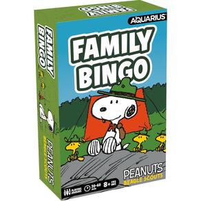 AQUARIUS Peanuts Snoopy Beagle Scouts Family Bingo – Divertido jogo de festa familiar para crianças, adolescentes e adultos – Presente de noite de jogo divertido – Mercadoria oficialmente licenciada