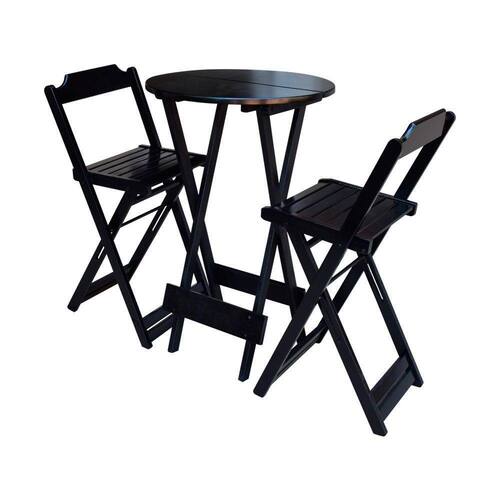 Jogo De Bistrô C/ 02 Banquetas Pretoé ideal para bares, restaurantes, estabelecimentos, áreas de lazer e tambem para sua casa. Feito em madeira maciça, tornando resistentes e duráveis. Seu design permite que seja encaixado em qualquer ambiente, trazendo um toque a mais para seu estabelecimento. Além de sua durabilidade, o que lhe trará conforto para servir seus clientes. Por ser dobrável torna-se mais fácil guardar, manusear e limpar o produto.Atenção: EVITE USAR PRODUTOS ABRASIVOS E QUíMICOS PARA LIMPEZA DO PRODUTO, aconselha-se o uso de pano umedecido para melhor conservação; mantenha o produto fora de chuva e sol constantes.OBS: MDF ULTRAMESA Cor: Preto Modelo: Bistrô Dobravel Dimensões: Altura 99cm | Largura 55cm | Profundidade 55cmCADEIRA Cor: Preto Modelo: Bistrô Dobravel Dimensões: Altura 100cm | Largura 38cm | Profundidade 37cmJogo de Bistrà C/ 02 Banquetas Preto Marca: Preguiçosa